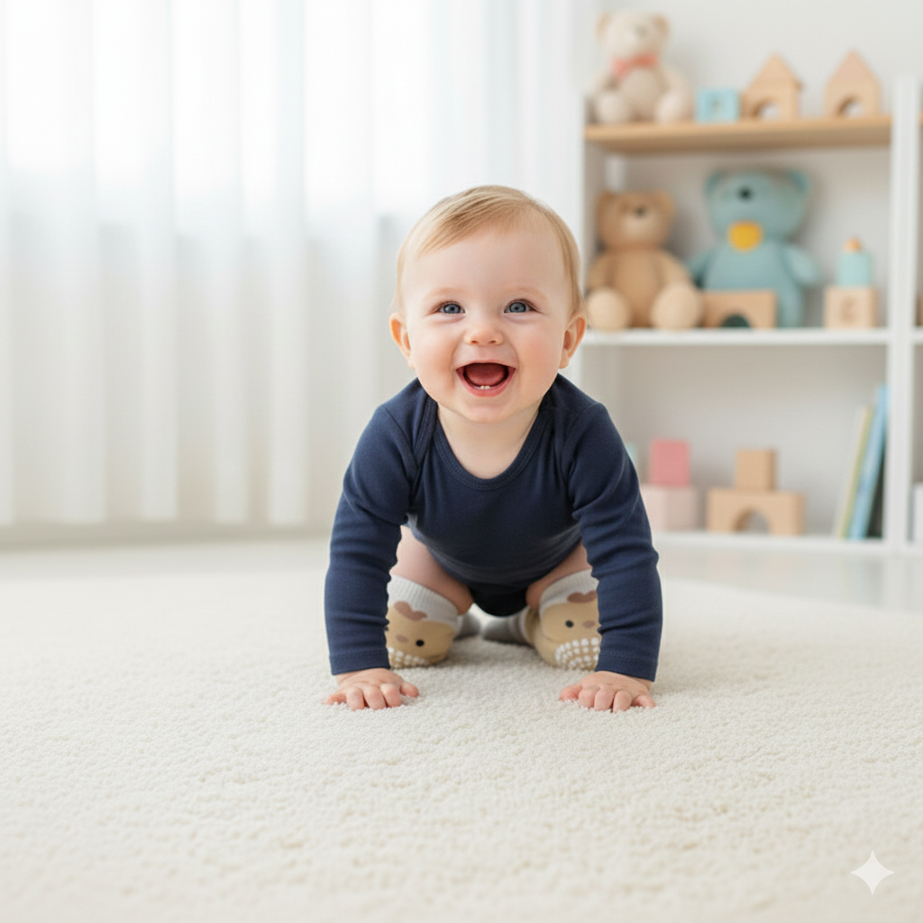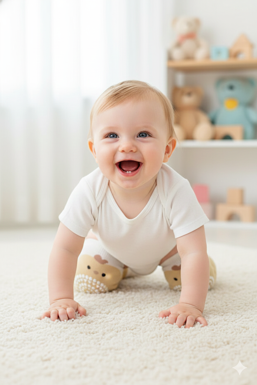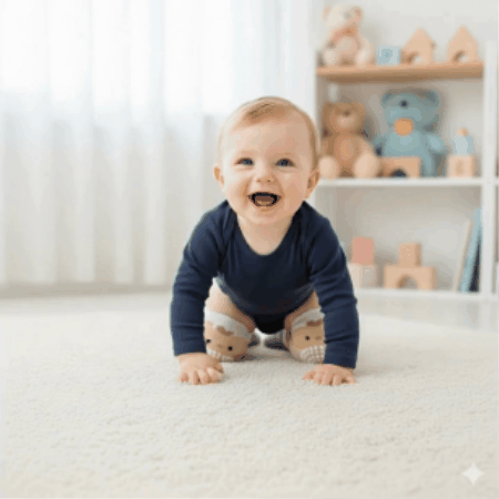Evet. Dizliğin ön yüzeyindeki özel silikon noktacıklar, parke, fayans veya laminat gibi kaygan zeminlerde mükemmel tutuş sağlar. Bebeğinizin güvenle denge kurmasına ve kayıp düşme riskini azaltmasına yardımcı olur.